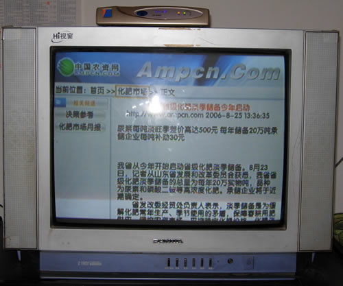 下為(wei)中(zhong)國農(nong)資網電(dian)視(shi)版現場(chang)測試圖