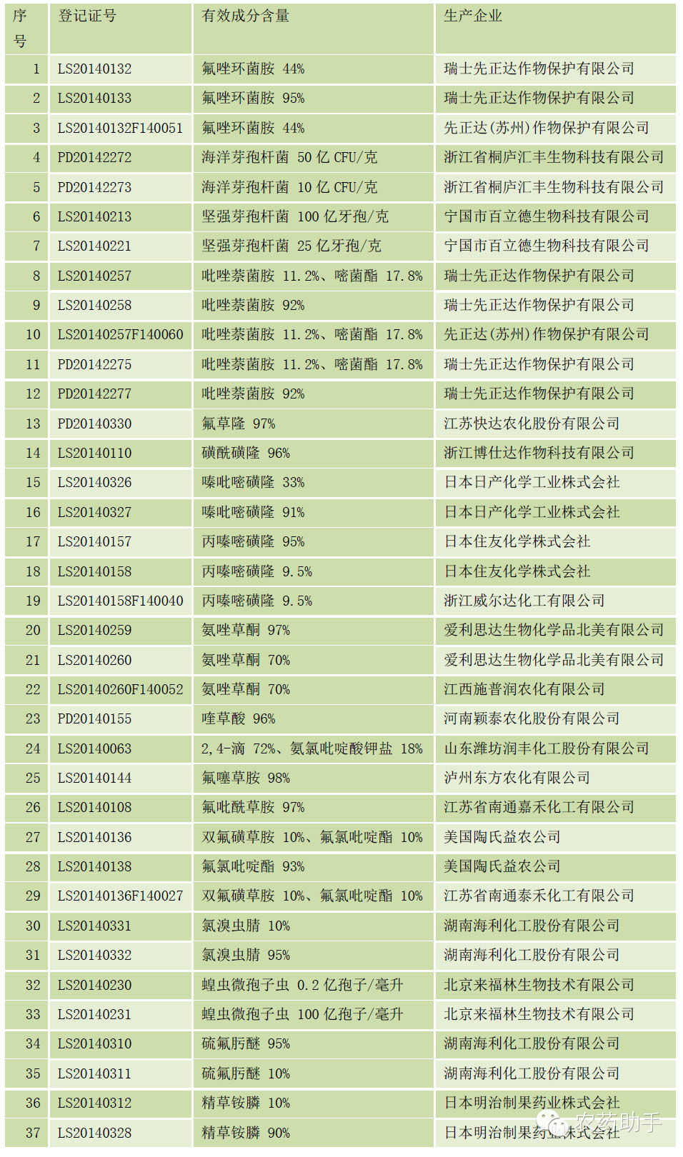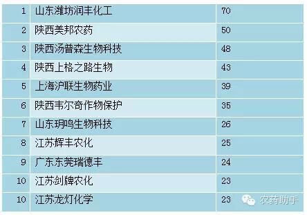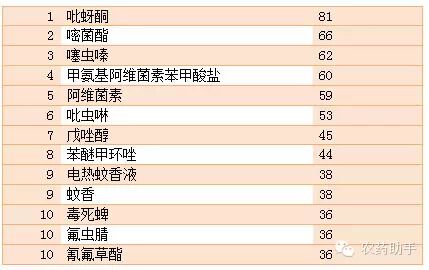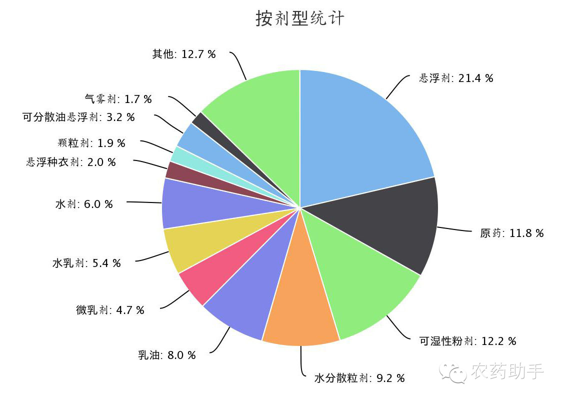 懸浮劑:721個(ge);可(ke)濕(shi)性粉劑:411個(ge);原藥:397個(ge);水分散粒劑:309個(ge);