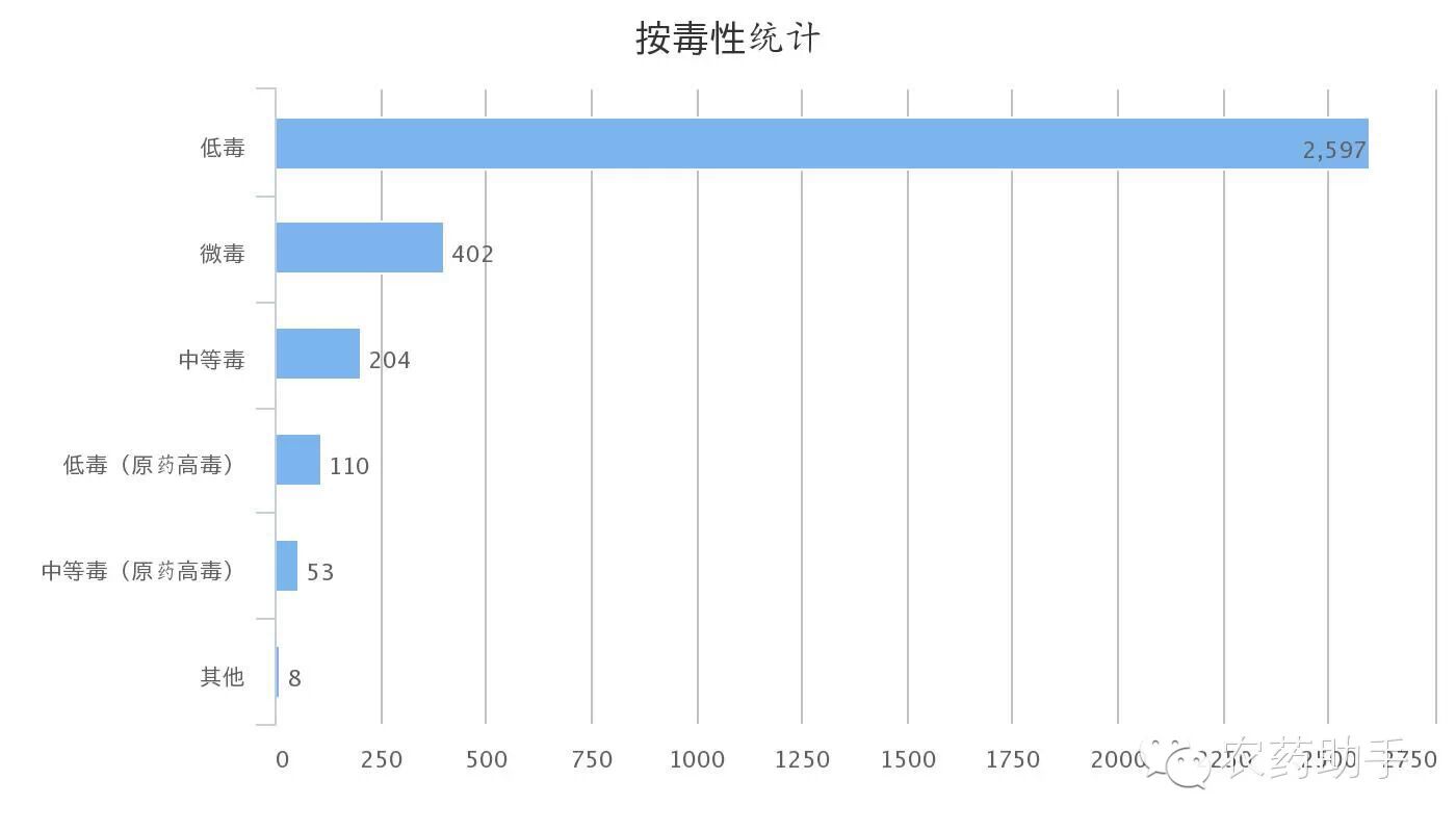 低毒(du):2597個;微毒(du):402個;中等毒(du):204個;