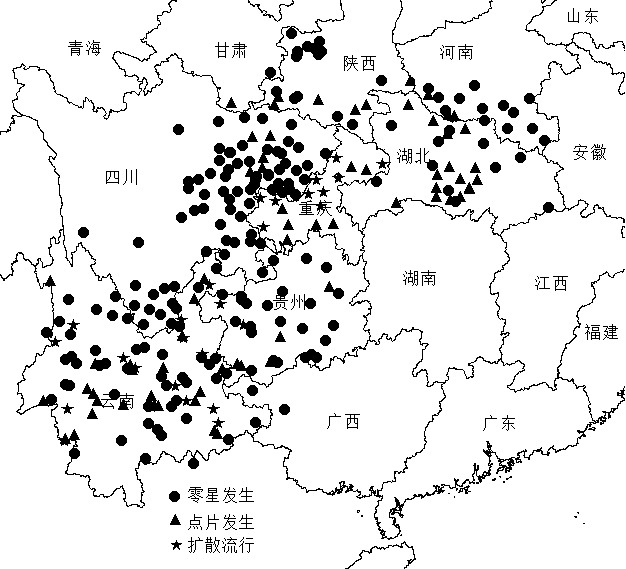 貴州省在8市(州)33個縣(xian)發(fa)生(sheng),其(qi)中(zhong)赫章、納雍、盤縣(xian)、水城、平塘、長順、甕(weng)安(an)等縣(xian)呈(cheng)點(dian)片發(fa)生(sheng),發(fa)生(sheng)面(mian)積39.2萬畝,同比增加13倍,是2周前的5.4倍。