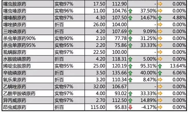 8月中旬農藥原藥殺蟲劑價格行情