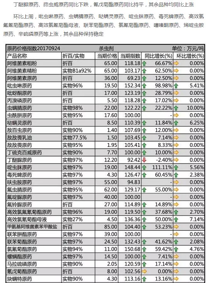9月下旬國內農藥原藥殺蟲劑價格行情