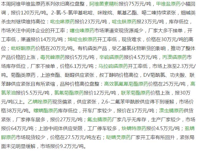 12月底國內農藥原藥殺蟲劑市場行情