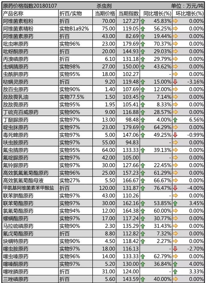 1月上旬國內農藥殺蟲劑原藥價格行情