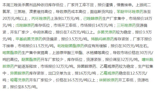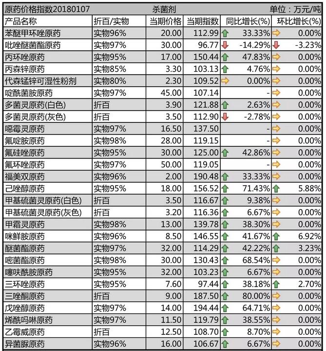 1月上旬國內農藥殺蟲劑原藥價格行情