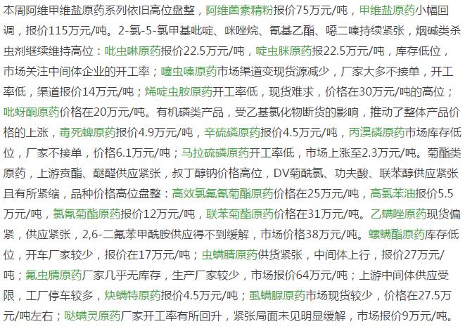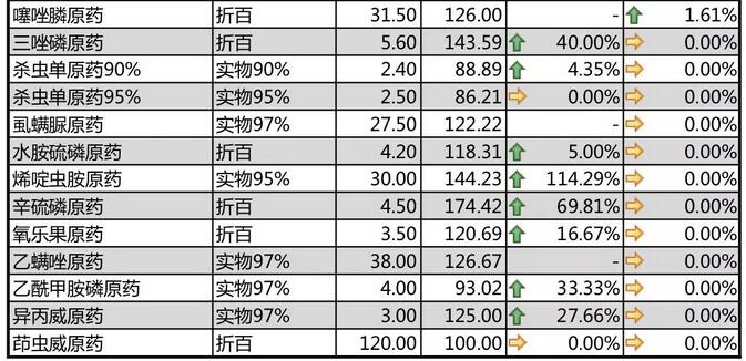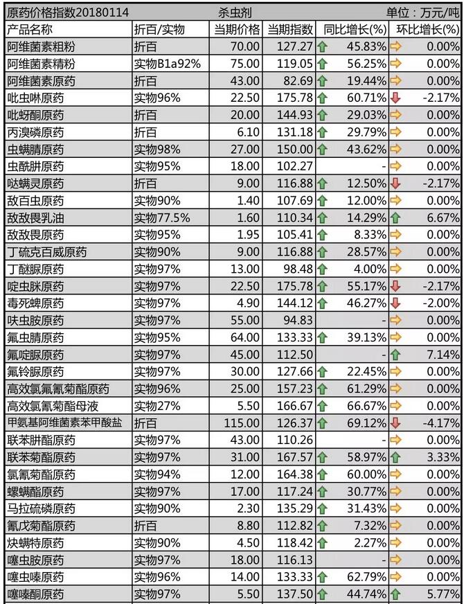 1月上旬國內農藥殺蟲劑原藥價格行情