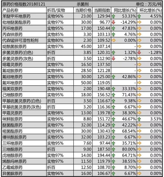 1月中旬農藥原藥殺菌劑價格行情