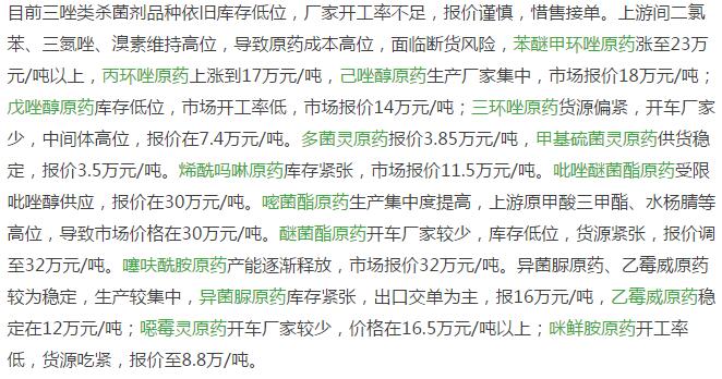 12月底國內農藥原藥殺菌劑市場行情