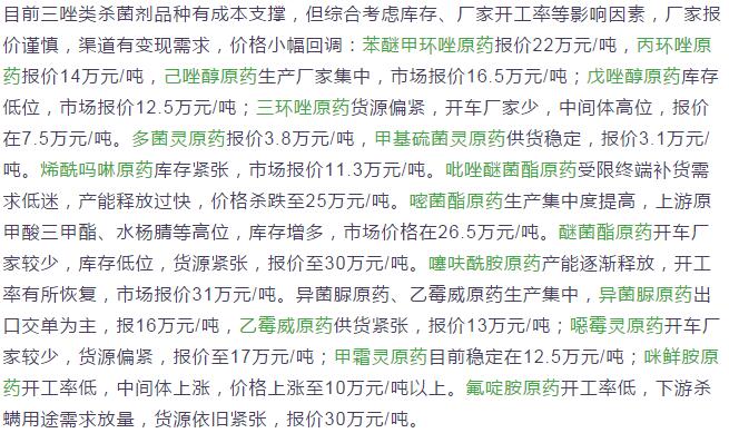 4月中旬國內農藥原藥殺菌劑價格行情