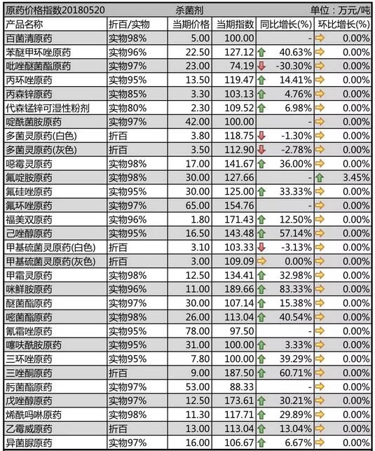 5月中旬國內農藥原藥殺菌劑價格行情