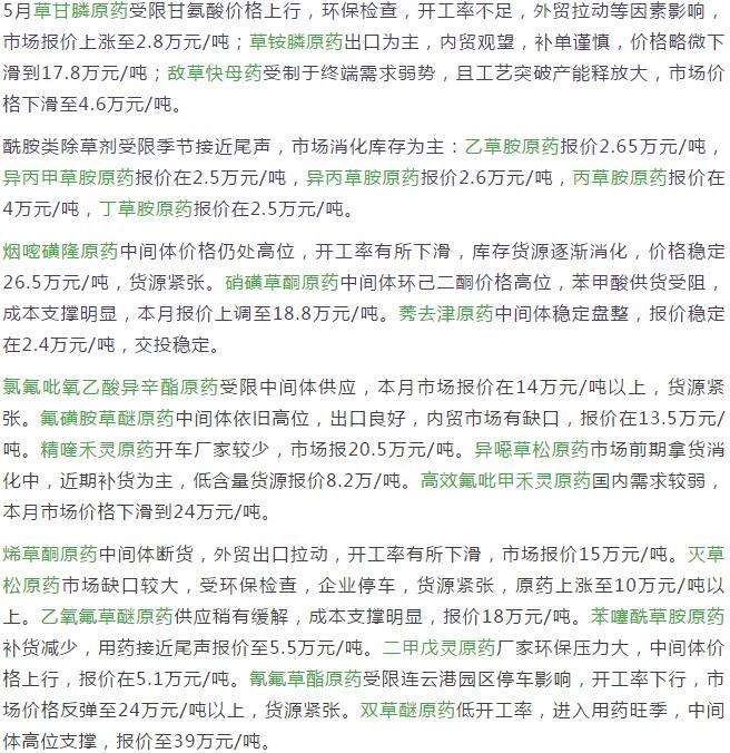 5月中旬國內農藥原藥殺蟲劑價格行情