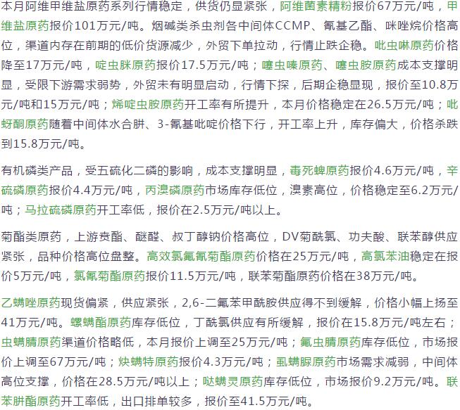 5月下旬國內農藥原藥殺蟲劑價格行情