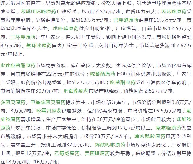 5月下旬國內農藥原藥殺蟲劑價格行情
