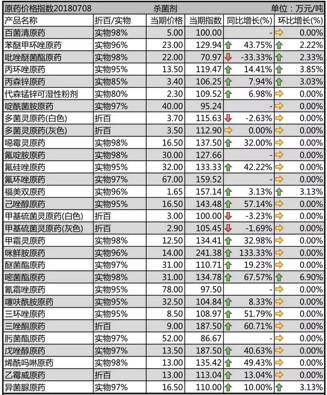 7月初國內農藥原藥殺菌劑行情走勢