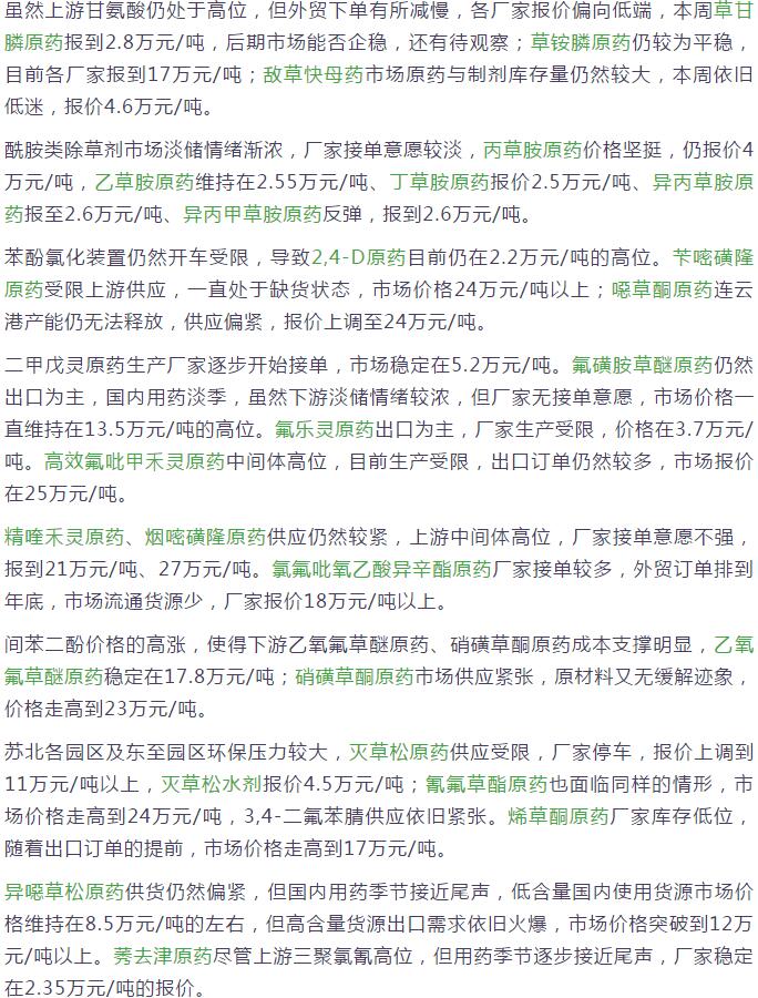 7月上旬國內農藥原藥殺菌劑行情走勢