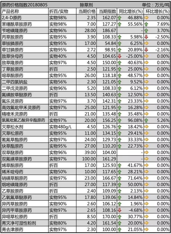 8月上旬國內農藥原藥除草劑價格走勢