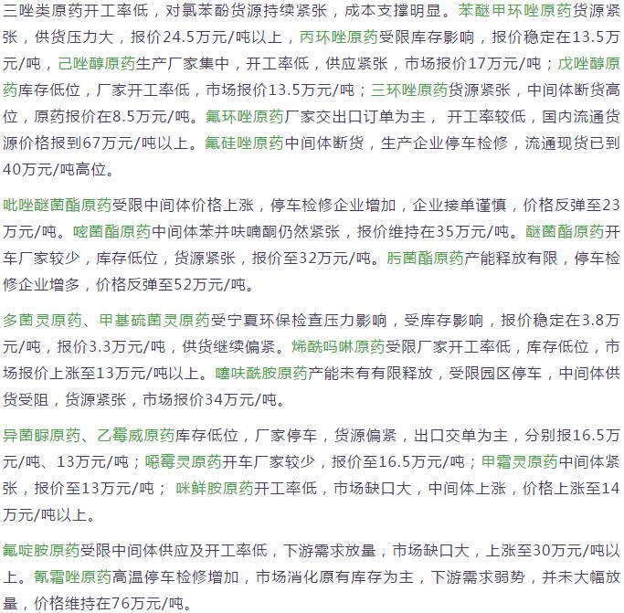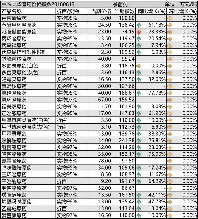 8月中旬國內農藥市場殺菌劑原藥價格走勢