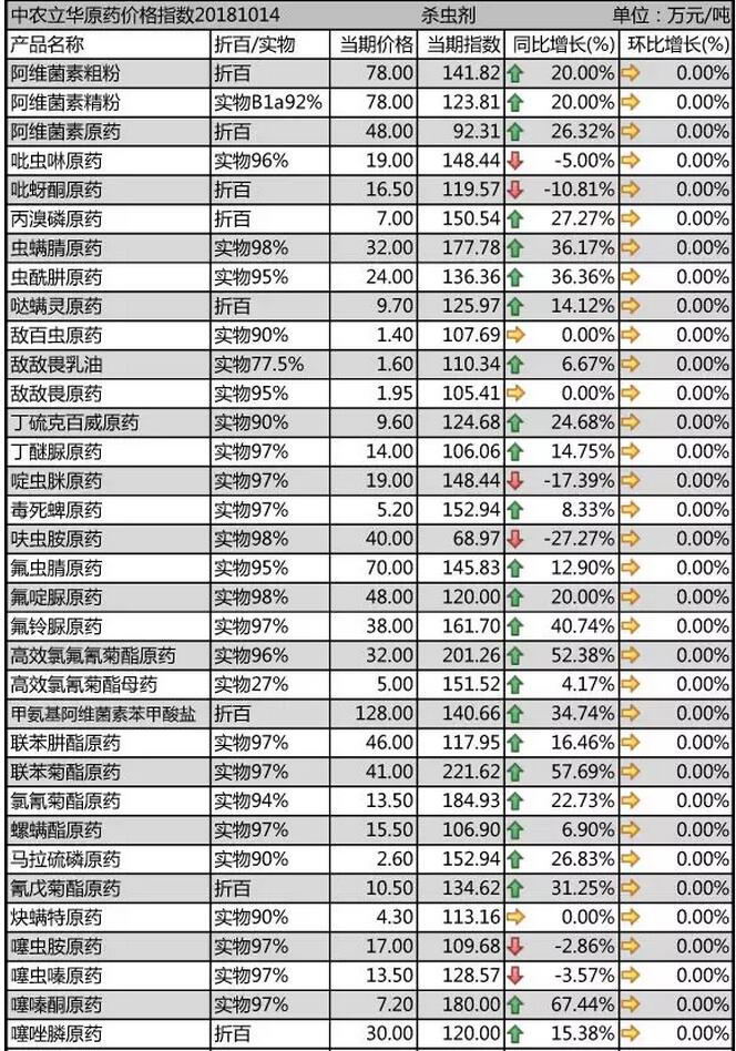10月中旬國內農藥原藥殺蟲劑市場行情走勢