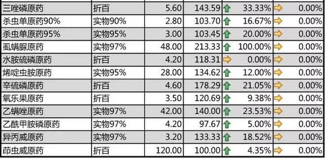 本周國內農藥原藥殺蟲劑價格走勢