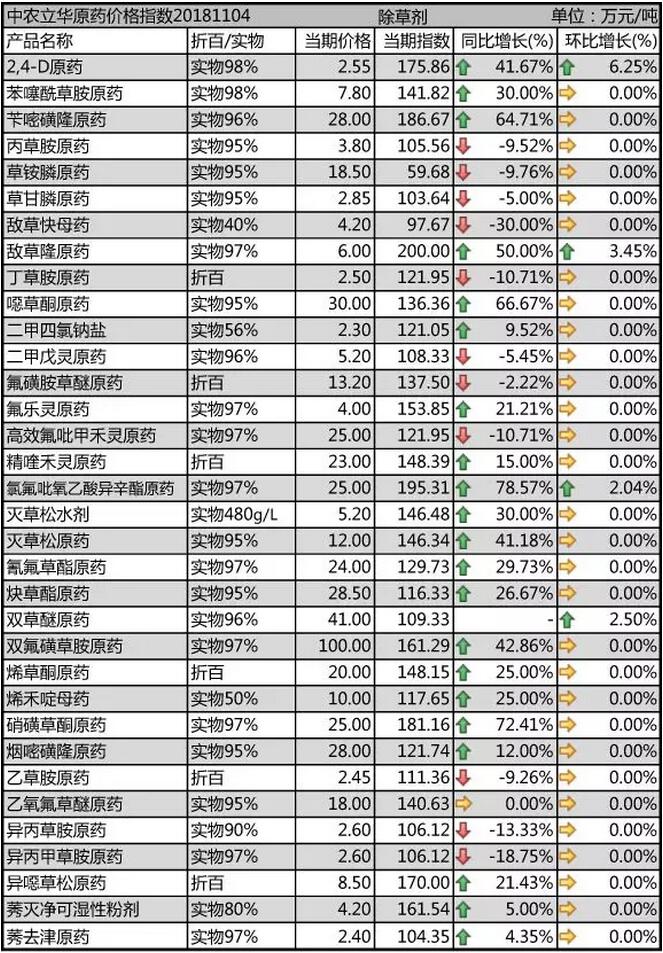 11月上旬國內農藥原藥除草劑價格走勢
