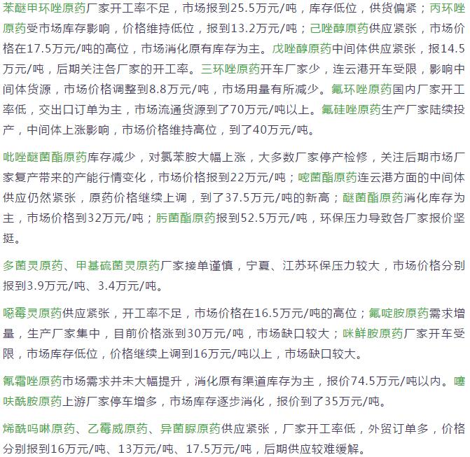 10月中旬國內農藥原藥殺菌劑市場行情走勢