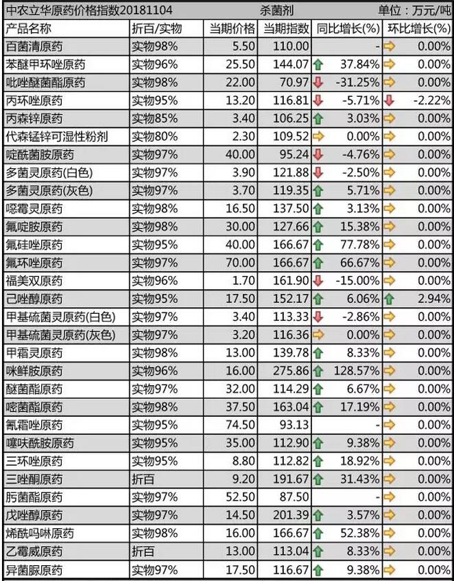 11月上旬國內農藥原藥殺菌劑價格走勢