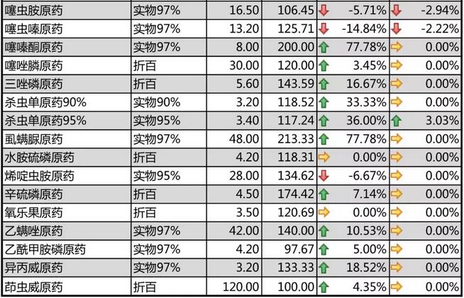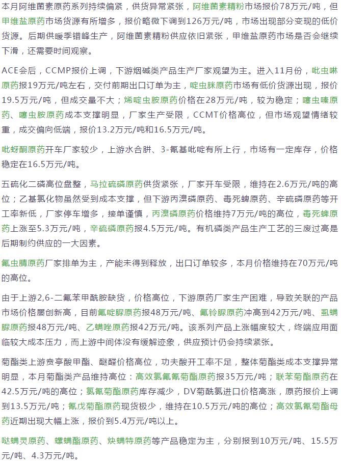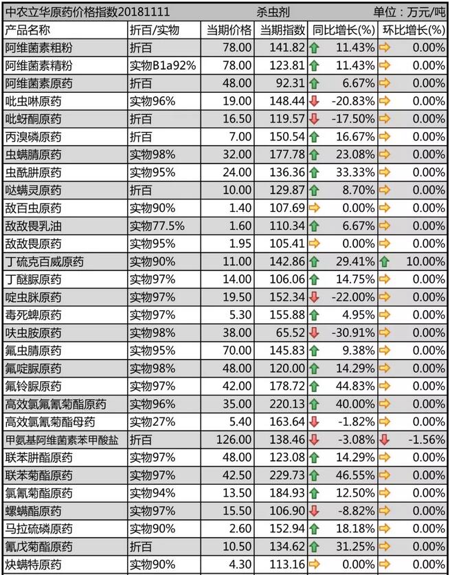 11月中旬國內農藥原藥殺蟲劑價格走勢