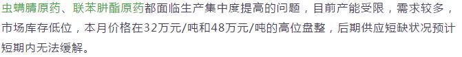 多款原藥貨源緊張價格提升