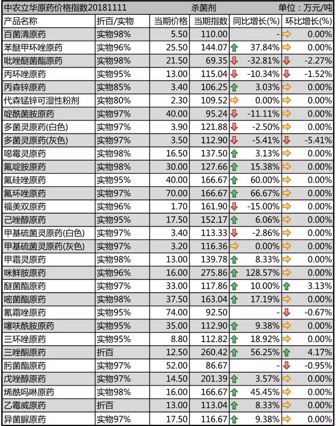 11月中旬國內農藥原藥殺菌劑價格走勢