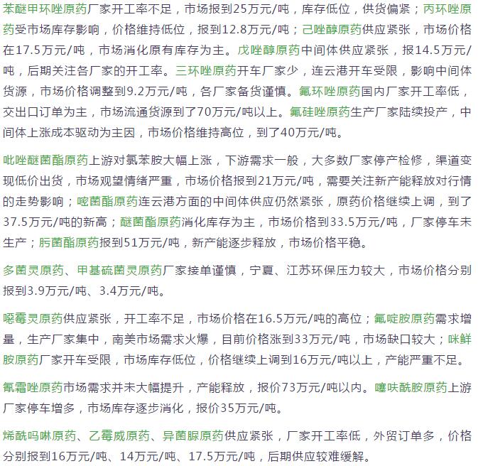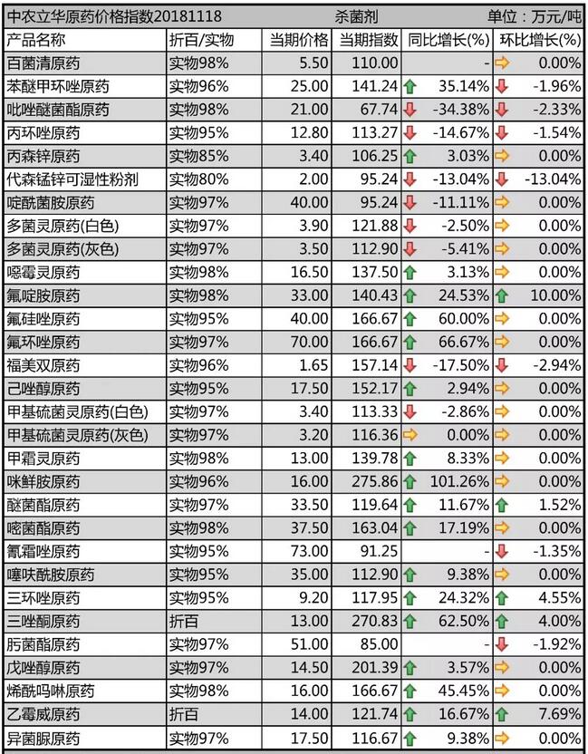 11月中旬國內農藥原藥殺菌劑價格走勢