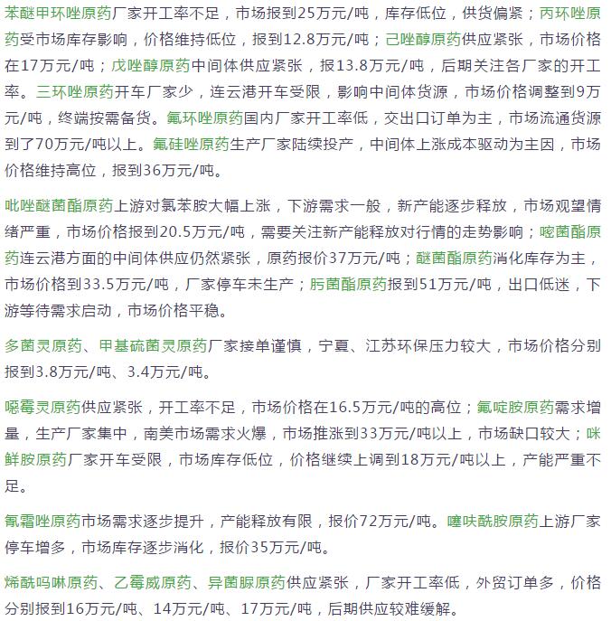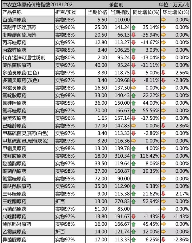 11月中旬國內農藥原藥殺菌劑價格走勢