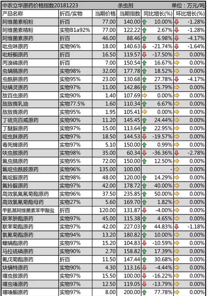 12月中旬國內農藥原藥殺蟲劑價格走勢