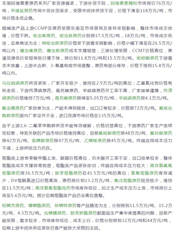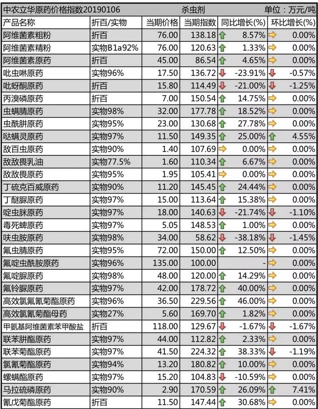19年1月上旬國內農藥原藥殺蟲劑價格走勢