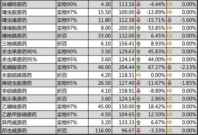 12月中旬國內農藥原藥殺蟲劑價格走勢
