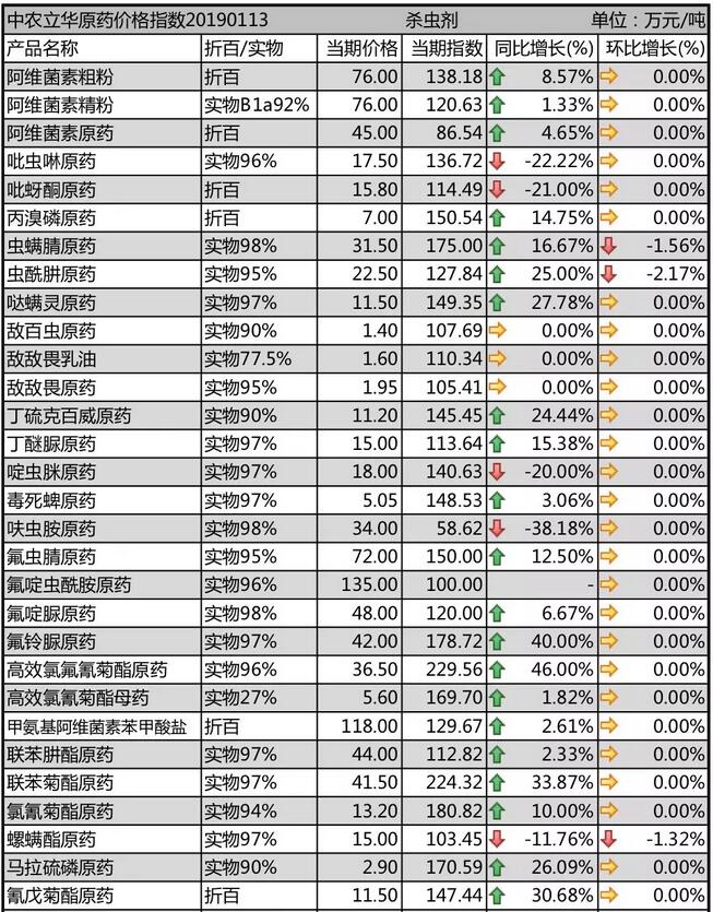 19年1月上旬國內農藥原藥殺蟲劑價格走勢