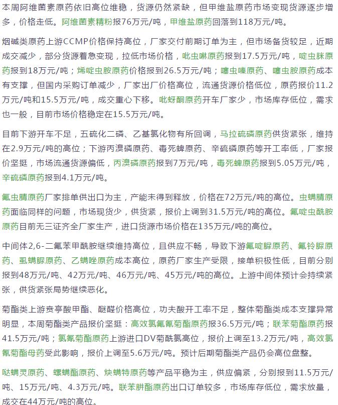 12月中旬國內農藥原藥殺蟲劑價格走勢