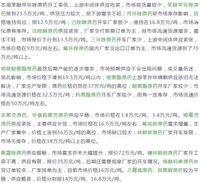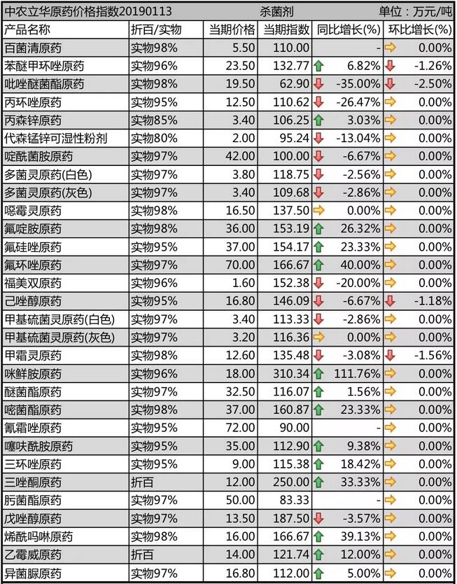 19年1月中旬國內農藥原藥殺菌劑價格走勢