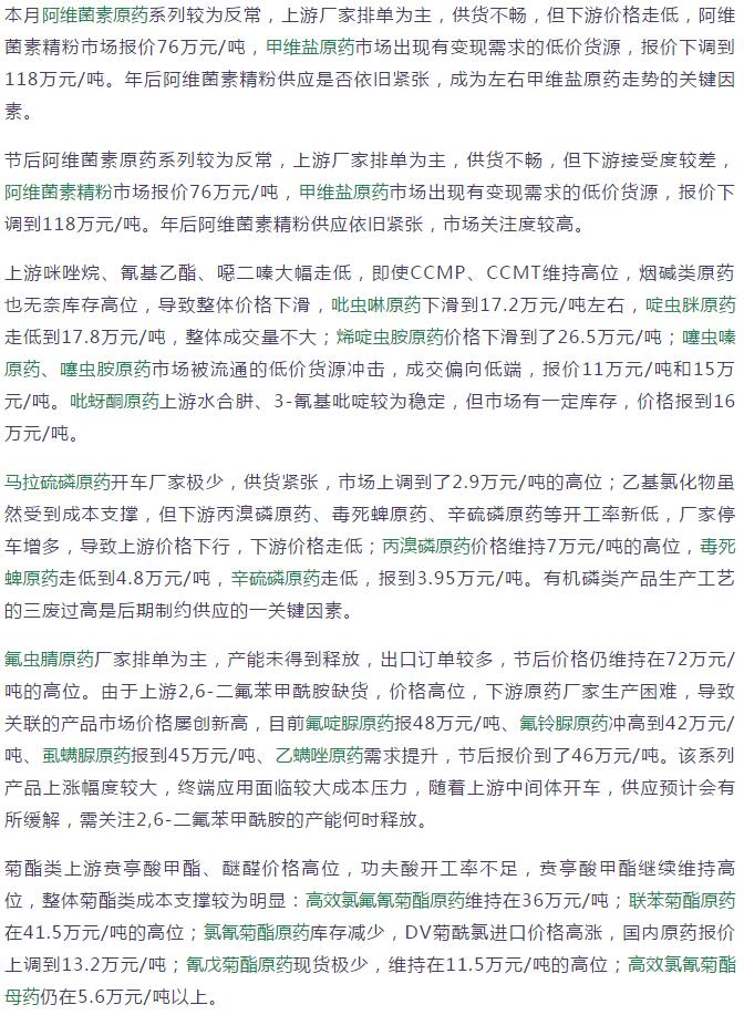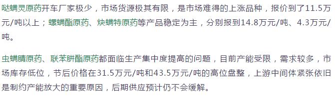 多款原藥貨源緊張價格提升