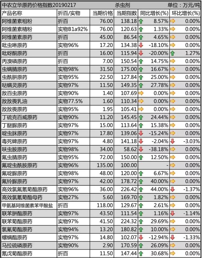 19年2月中旬國內農藥原藥殺蟲劑價格走勢