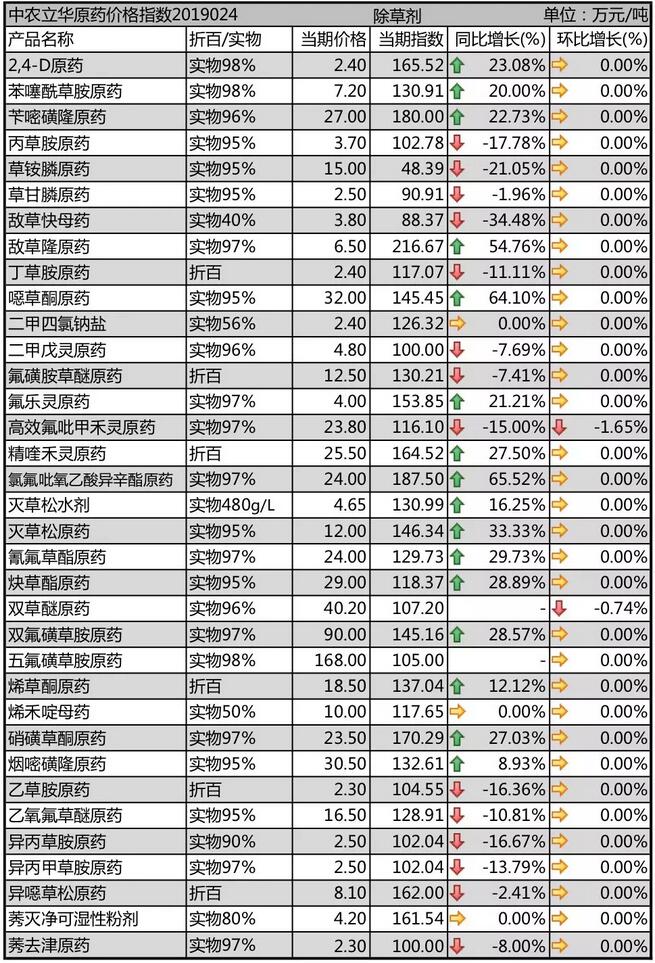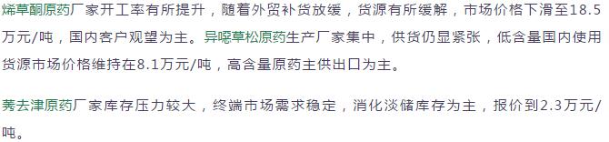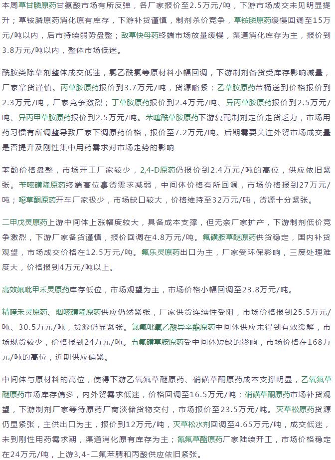 19年2月下旬國內農藥原藥除草劑價格走勢