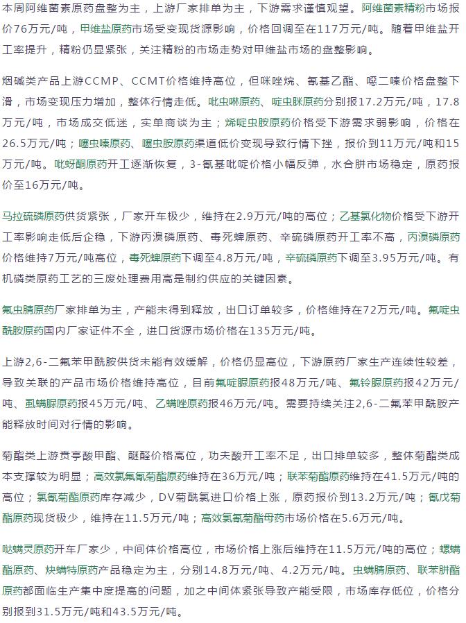 多款原藥貨源緊張價格提升