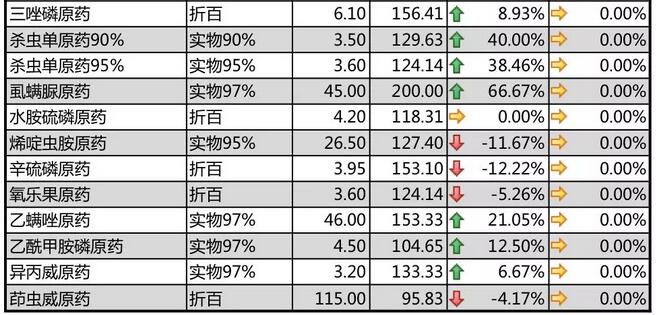 19年1月上旬國內農藥原藥殺蟲劑價格走勢