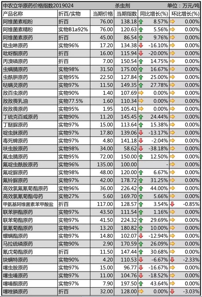 19年2月下旬國內農藥原藥殺蟲劑價格走勢