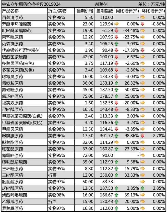 19年2月下旬國內農藥原藥殺菌劑價格走勢