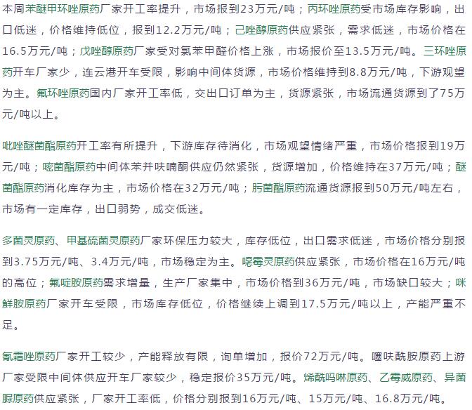 19年1月中旬國內農藥原藥殺菌劑價格走勢