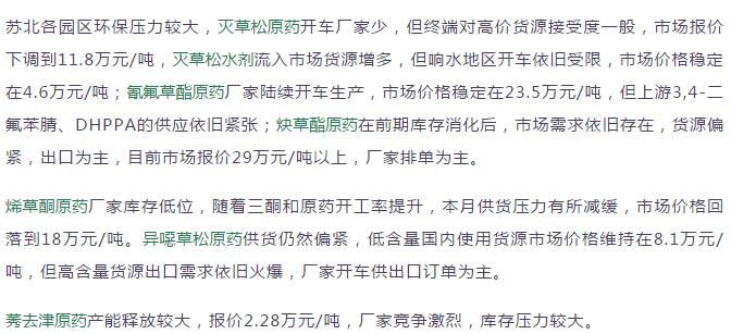 19年3月中旬國內農藥原藥除草劑價格走勢