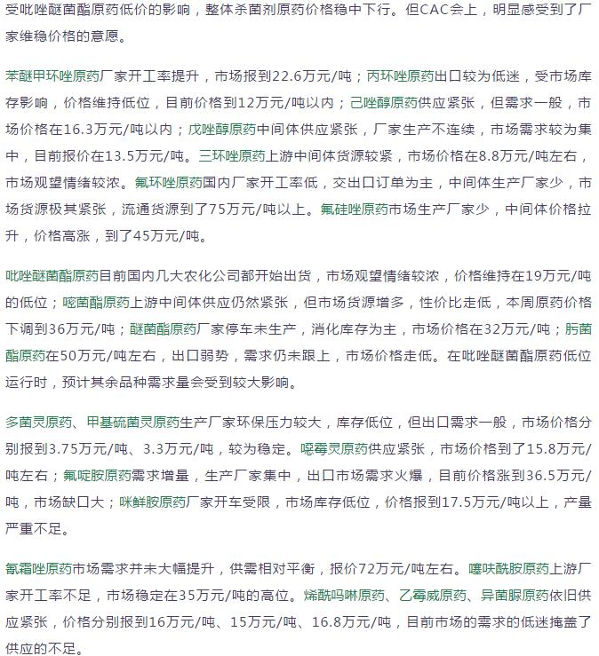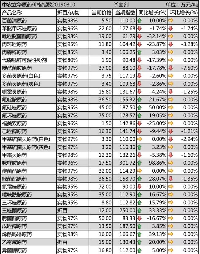 19年3月中旬國內農藥原藥殺菌劑價格走勢