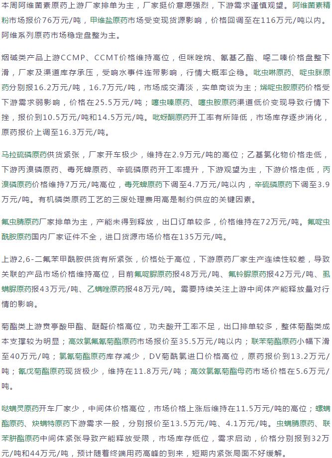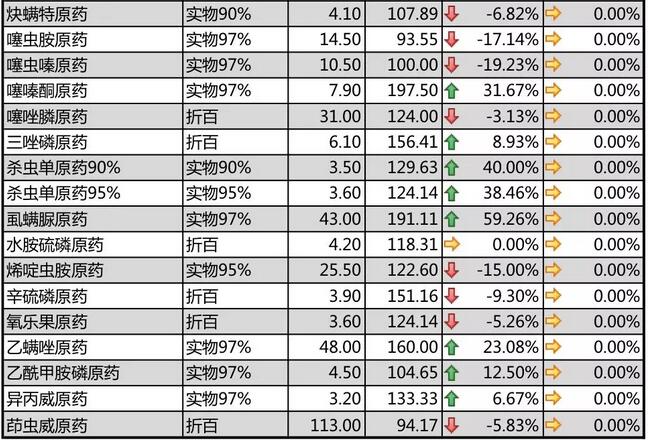 19年3月中旬國內農藥原藥殺蟲劑價格走勢