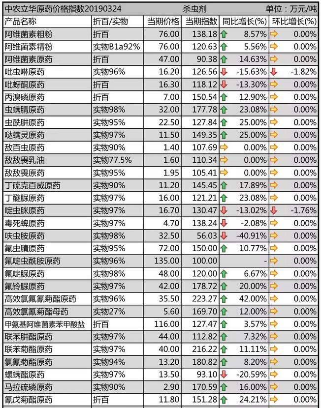 19年3月下旬國內農藥原藥殺蟲劑價格走勢