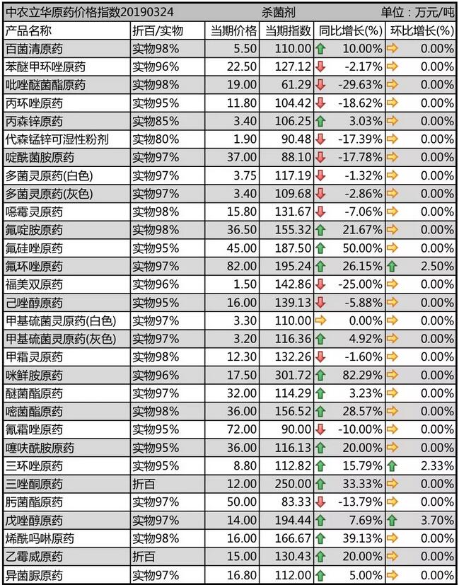 19年3月下旬國內農藥原藥殺菌劑價格走勢